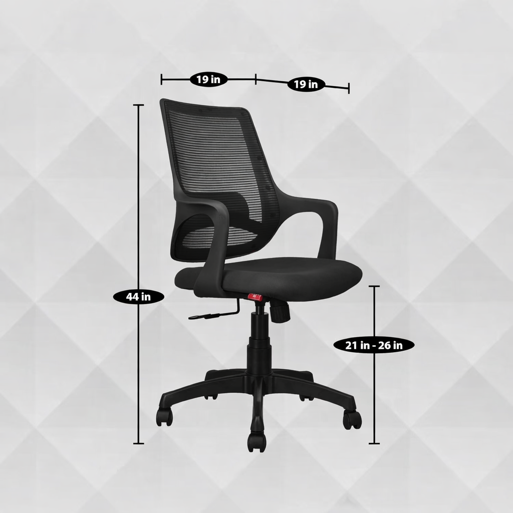 Aura MB Ergonomic Mesh Back Office Chair with Adjustable Height, Tilt Lock & Fixed Armrests – Black