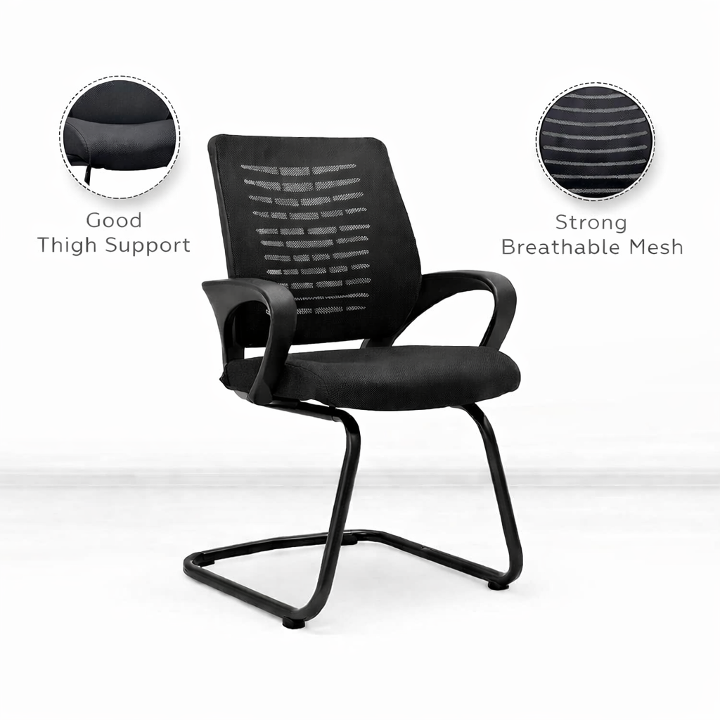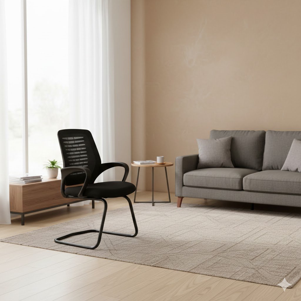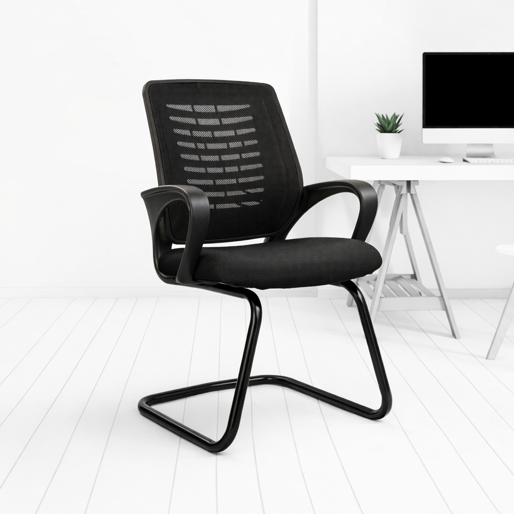 805 Mesh Visitor Chair with Fixed Armrests, Breathable Backrest & Chrome Cantilever Base – Black
