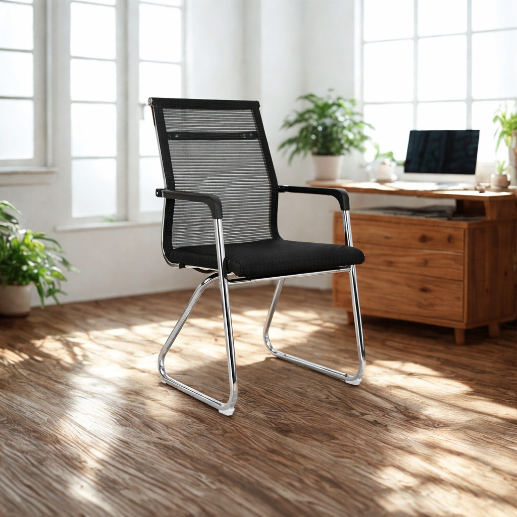Mesh Visitor Chair with Chrome Sled Base, Breathable Mesh Back, Soft Cushioned Seat & Ergonomic Armrests – Ideal for Office, Reception & Waiting Rooms (Black)