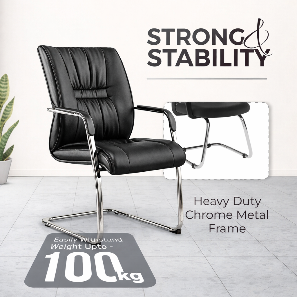 Built on a chrome-plated sled base, this visitor chair offers excellent stability along with a modern aesthetic that suits any office interior. The ergonomically contoured backrest ensures good posture support, making it suitable for long sitting durations.