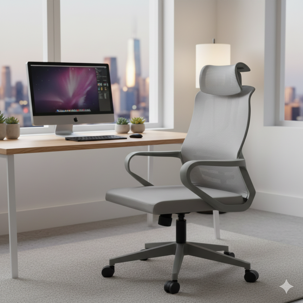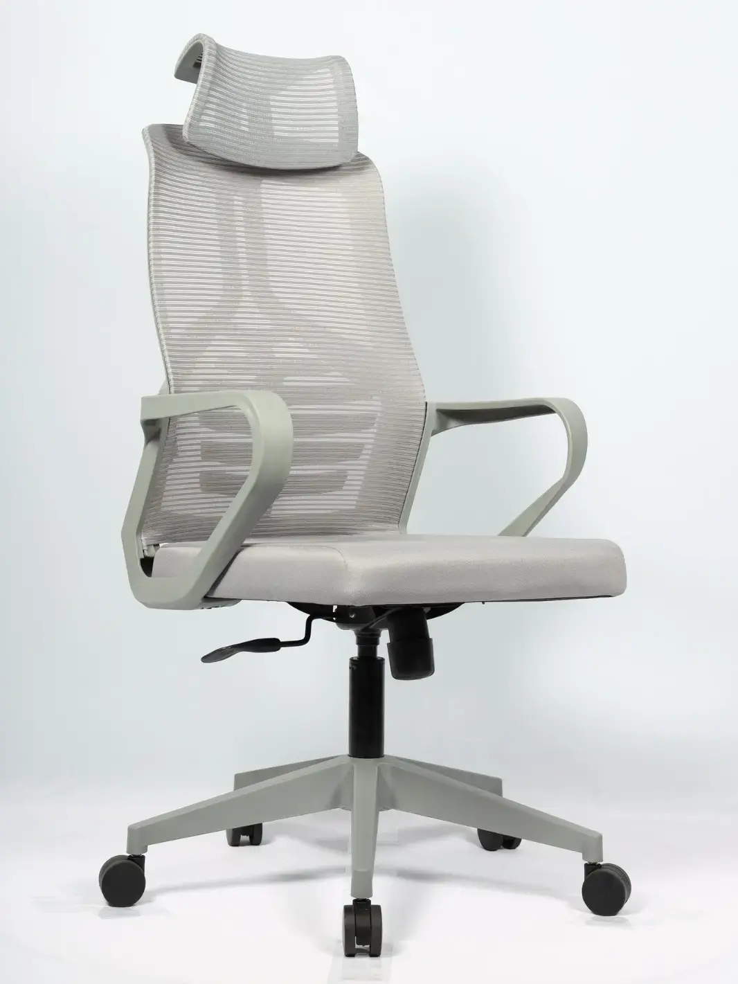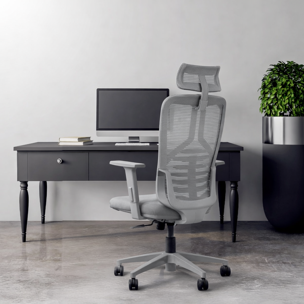 | Quartz HB Grey High-Back Ergonomic Office Chair with Adjustable Headrest, Mesh Back, and Lumbar Support – Grey |