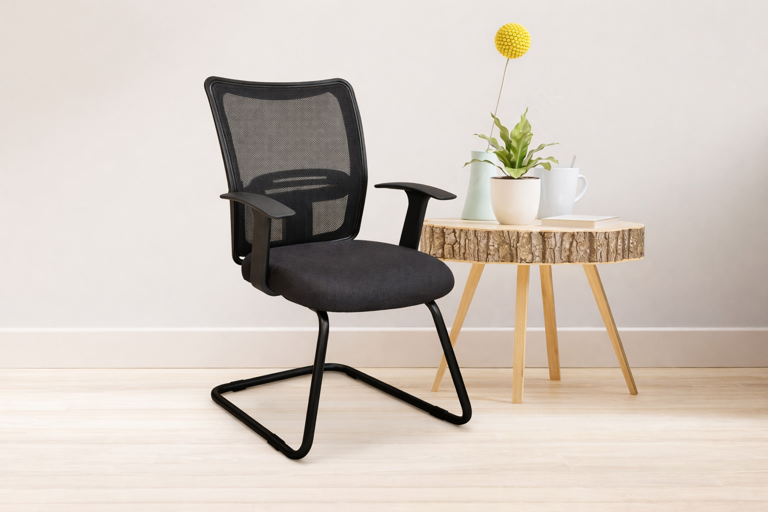 Brio Mesh Visitor Chair with Breathable Mesh Back, Soft Cushioned Seat, Comfortable Armrests & Heavy-Duty S‑Type Metal Frame – Ideal for Office, Reception & Waiting Rooms (Black)