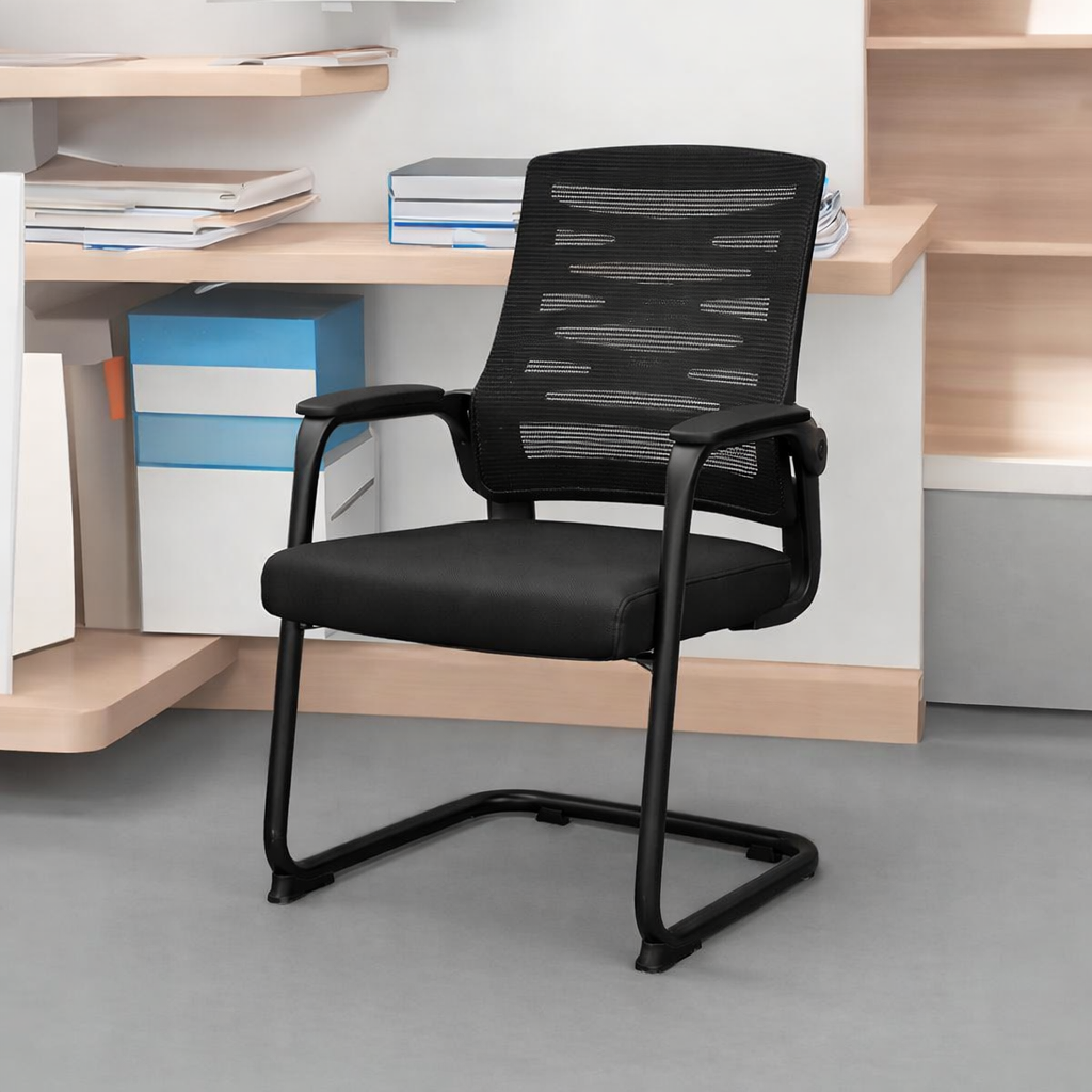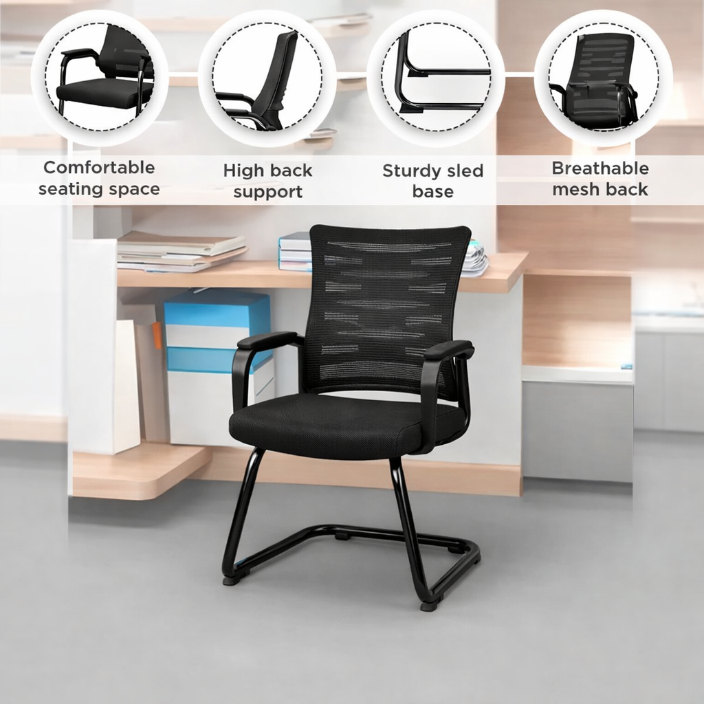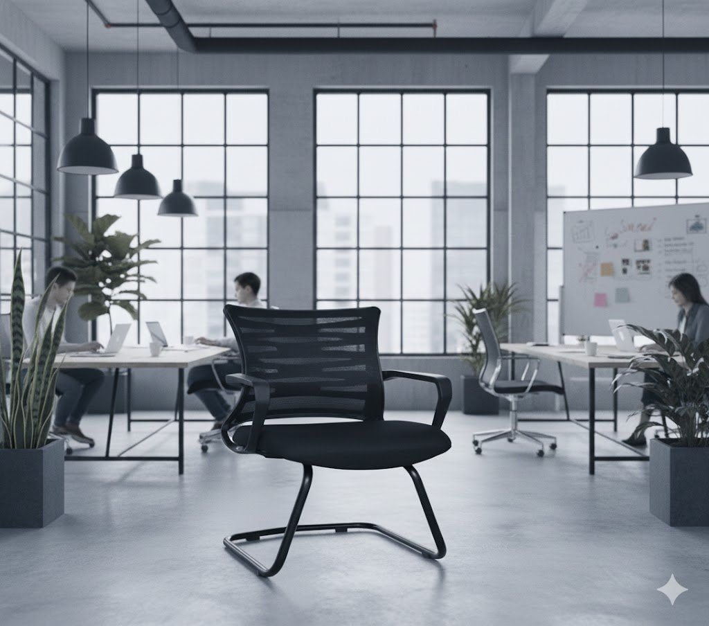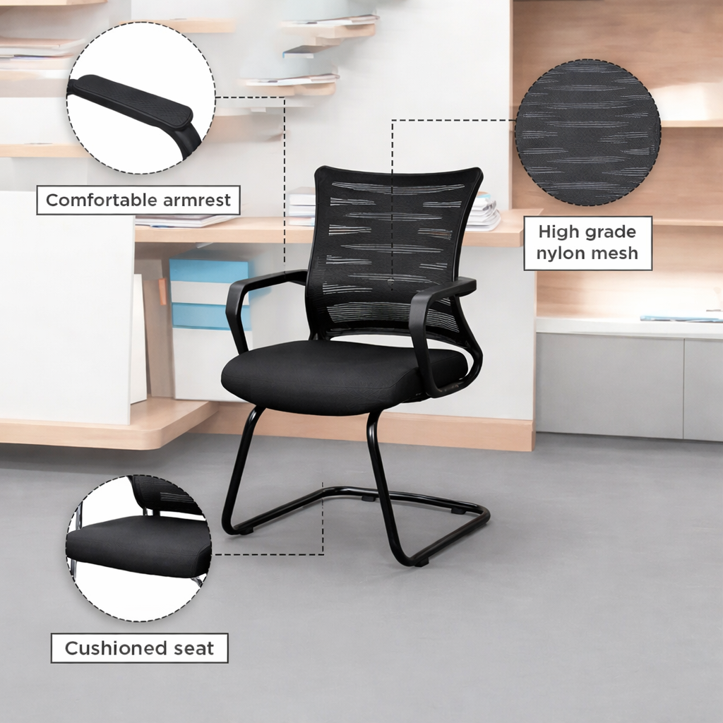 The SteelNest visitor chair delivers comfort and durability for professional environments. It features a breathable mesh backrest with lumbar support and a cushioned PU-moulded foam seat for superior comfort. The sturdy chrome cantilever base ensures stability and a sleek modern look, while fixed armrests provide added support during meetings or waiting periods.