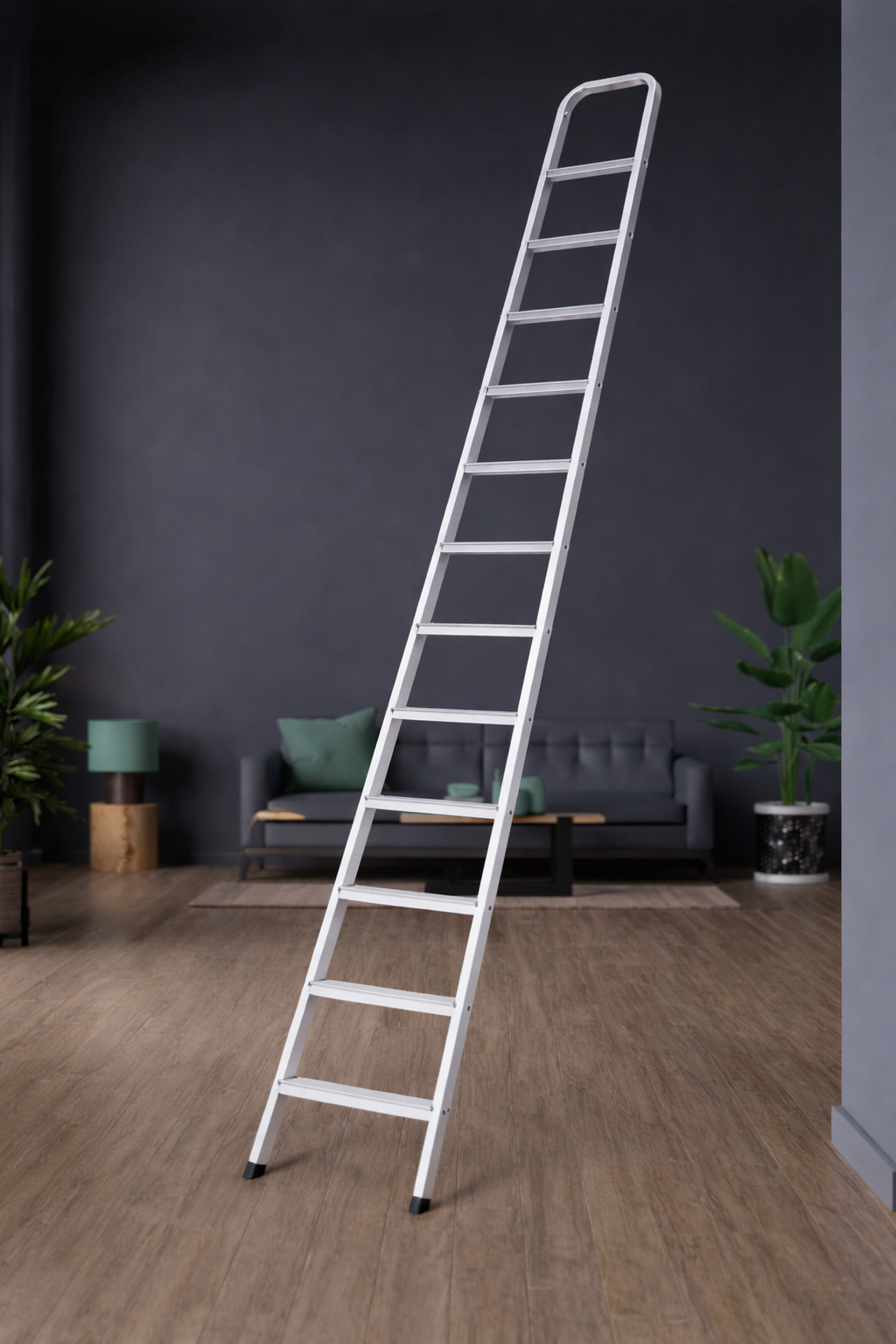 This ladder features flat, anti‑slip aluminium steps, providing secure footing and reducing fatigue while climbing. The simple wall‑leaning design makes it perfect for spaces where freestanding ladders may not be practical. The non‑slip rubber feet keep the ladder steady, ensuring safe use on multiple floor types.