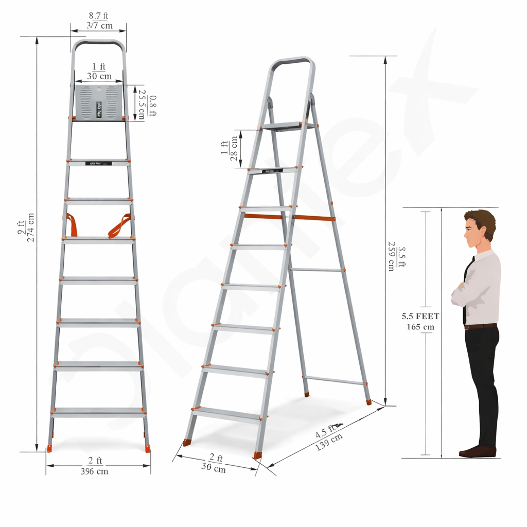Whether for household cleaning, outdoor wall repairs, electrical work, warehouse stacking, or high‑reach storage, this 8‑ft aluminium ladder delivers strength, efficiency, and safety in one compact solution.